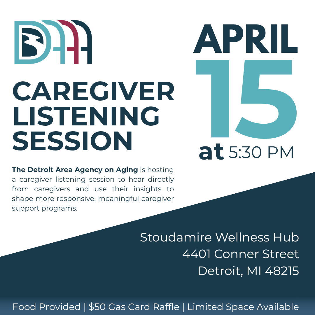 Caring for a loved one can be deeply meaningful—and challenging. The Detroit Area Agency on Aging (DAAA) invites caregivers to join us for a Caregiver Listening Session, an in‑person conversation designed to ensure your experiences, needs, and ideas directly inform future caregiver support services.