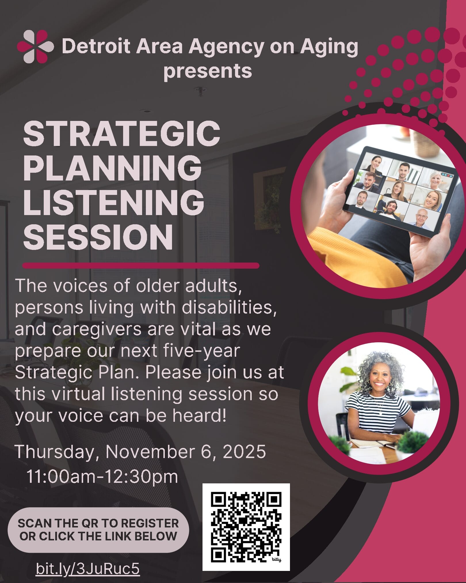 Who: Detroit Area Agency on Aging invites older adults, adults with disabilities, caregivers, community partners, and advocates across metro Detroit. What: A Virtual Listening Session to share your ideas, experiences, …